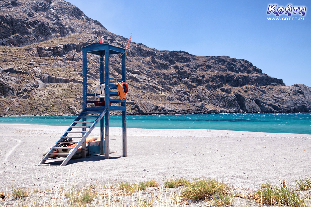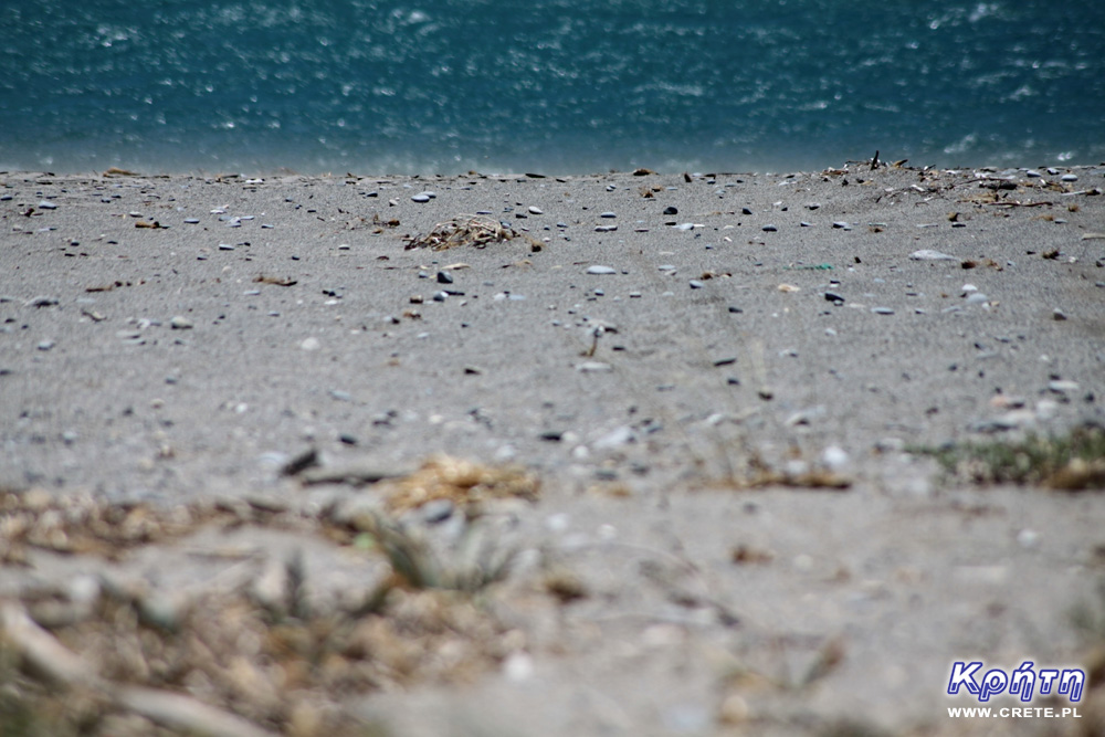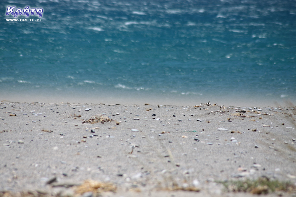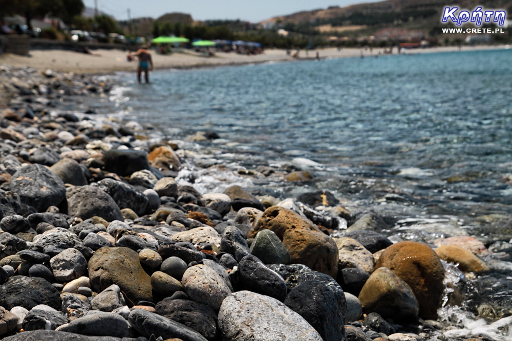 Plaża w Plakias jest stosunkowo długa jak na standardy Krety - ma aż około 1300 metrów. Większa jej część jest piaszczysta jednak w rejonie, w którym załamują się fale, są kamienie. Kilkadziesiąt pierwszych metrów dna jest również kamienistych, z dość gwałtownym początkowo spadkiem. Jednak w dalszej części dno jest piaszczyste i obniża się łagodnie. Podczas naszych wakacji woda w morzu była dość zimna, jednak mogło to wynikać z wczesnej pory wyjazdu oraz dwóch lodowatych górskich strumieni wpadających do zatoki w Plakias.