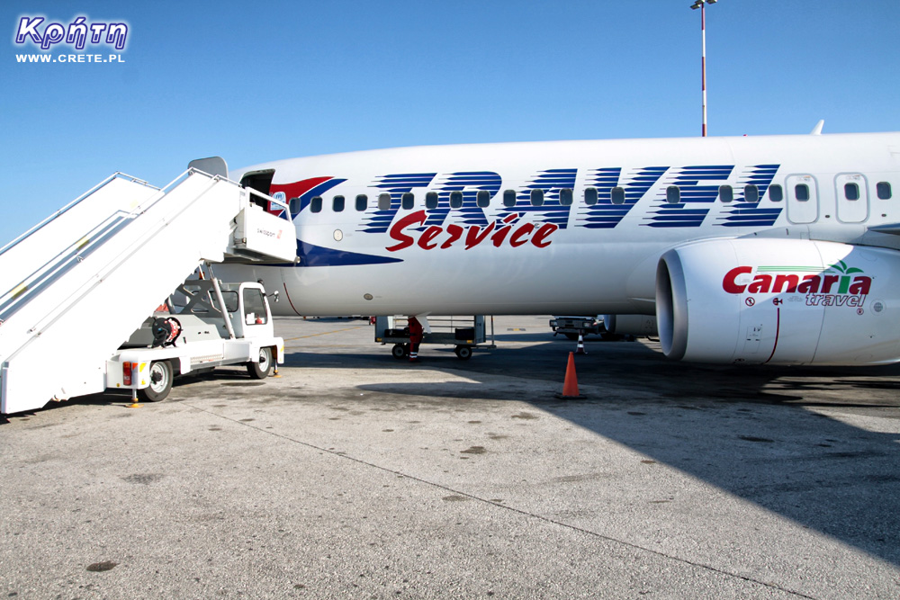 W tym roku nasz przelot obsługiwały czeskie linie lotnicze Travel Service. Załogę w miarę nowego samolotu Boeing 737-800 stanowiła w pełni polska obsługa. Mimo iż była dopiero połowa czerwca to w samolocie było zaledwie jedno wolne miejsce. Sam lot był zrealizowany o czasie i przebiegł bardzo spokojnie. Na lotnisku w Chania wylądowaliśmy tuż po godzinie 8 lokalnego czasu.
