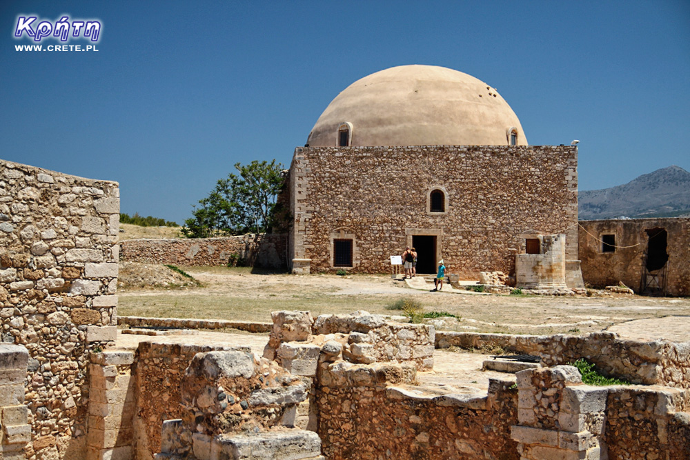 Autobus kończy trasę na głównym dworcu w Rethymno tuż obok stadionu na tyłach Fortezzy, czyli chyba najbardziej charakterystycznej atrakcji turystycznej tego miasta. Fortezza jest największym weneckim zamkiem na Krecie, jaki kiedykolwiek zbudowano. Postawiliśmy zajrzeć do niej ponownie, ponieważ kiedy byliśmy tu w 2008 roku, zamknięty był meczet sułtana Ibrahima. Chcieliśmy w końcu zobaczyć słynny sufit wieńczący kopułę meczetu. Cena biletu nie zmieniła się odkąd byliśmy tu poprzednio i nadal wynosi 4€.