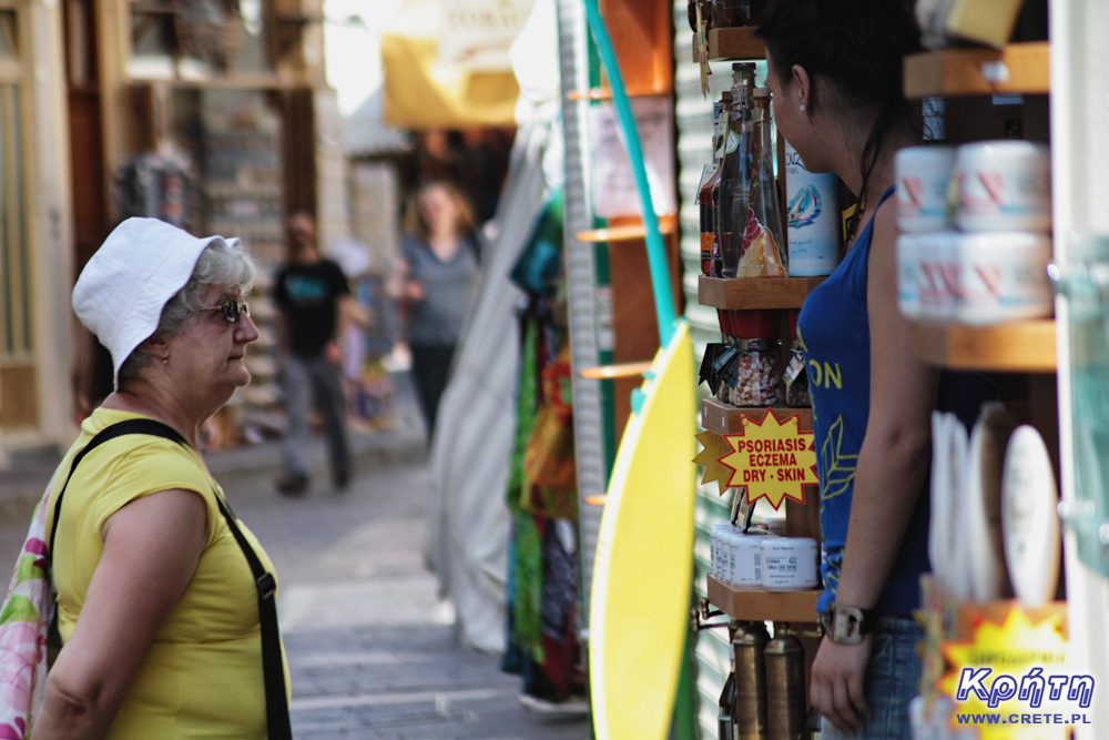 Po kilku szklankach świeżego soku pomarańczowego i frappe oraz godzince spędzonej pod wiatrakiem omiatającym nas chłodnymi podmuchami powietrza, byliśmy gotowi do dalszego spaceru po Rethymno. Klucząc uliczkami Starego Miasta doszliśmy do Portu Weneckiego, którego początki sięgają XIII wieku. Przyciągająca wzrok, charakterystyczna latarnia morska znajdująca się na końcu falochronu, została zbudowana w siedemnastym stuleciu przez Turków. Aby się do niej dostać trzeba obejść nabrzeże portowe. Niestety jest to równoznaczne z wystawieniem się na walkę z gromadą naganiaczy pracujących w tutejszych tawernach. Nie jest to łatwe zadanie, bo każdy naganiacz stara sie zatrzymać turystów w swojej tawernie nie zważając na odmowy. Co więcej zauważyliśmy, że z każdym kolejnym rokiem mówią oni coraz lepiej po polsku, a także są nawet gotowi zatańczyć taniec Zorby, aby zatrzymać klienta. My jednak tym razem nie daliśmy się skusić, bo w 2009 roku w jednej z tych tawern dostaliśmy znacznie zawyżony rachunek.