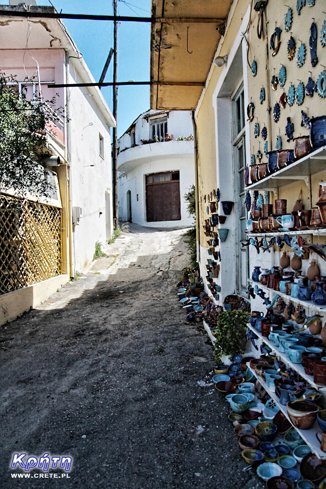 Po wyjechaniu z Eletherny w dalszym ciągu kierowaliśmy się na wschód przejeżdżając przez wioskę Margarites. Miejscowość ta jest znana na Krecie jako swoiste zagłębie drobnego rzemiosła garncarskiego, którego tradycja sięga tu kilkuset lat. Margarites jest opisywana w większości przewodników turystycznych, więc przyjeżdża tu naprawdę wiele osób w poszukiwaniu ciekawych wyrobów. Oczywiście i my też tu byliśmy kilka lat wcześniej lecz niestety ze smutkiem musimy stwierdzić, że ewolucja wzorów ceramiki, która jest tu teraz produkowana zdecydowanie nie przypadła nam do gustu. Coraz ciężej jest znaleźć typowo kreteńskie wzory, a coraz więcej rzeczy tworzonych jest pod upodobania turystów. Pogorszeniu uległa również jakość wykonania i wykończenia wyrobów. Widać to wyraźnie w zestawieniu z rzeczami, które kupiliśmy w 2008 roku. Co mimo wszystko nie oznacza, że wyjechaliśmy z Margarites z pustymi rękami. Małe co nieco dociążyło nasz limit bagażu :)