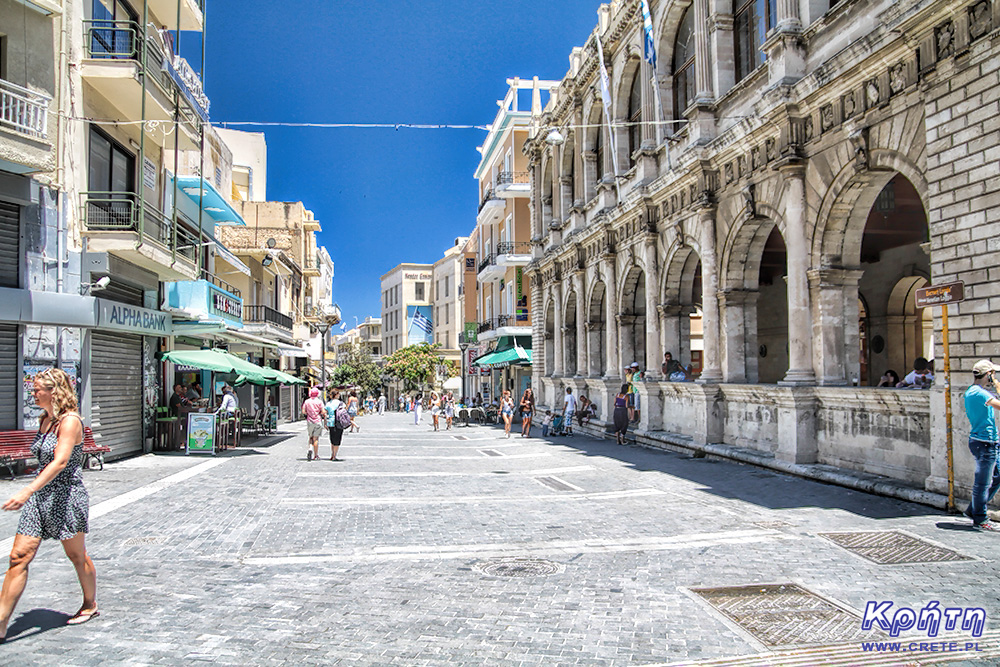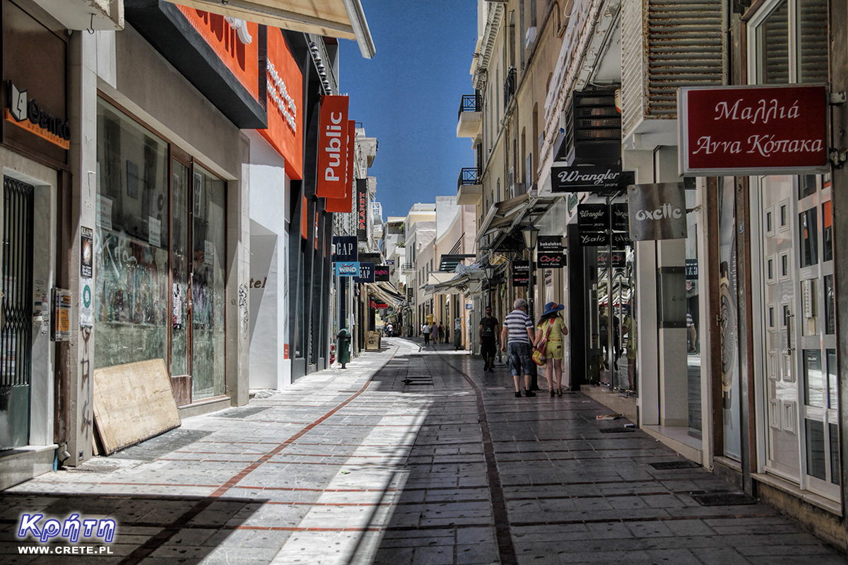 Krótką wizytę w Heraklionie zakończyliśmy spacerem po głównych turystycznych ulicach. Niedziela to w Grecji dzień wolny od pracy, co nawet w czasie sezonu turystycznego jest szanowane przez większość sklepów znajdujących się w tym mieście. W tym czasie czynne są tawerny, kafejki oraz niewielkie stragany, lecz główne ulice handlowe świecą pustkami. Oczywiście nie dotyczy to typowo turystycznych miejscowości, w których nie sposób odróżnić niedzieli od innych dni tygodnia.