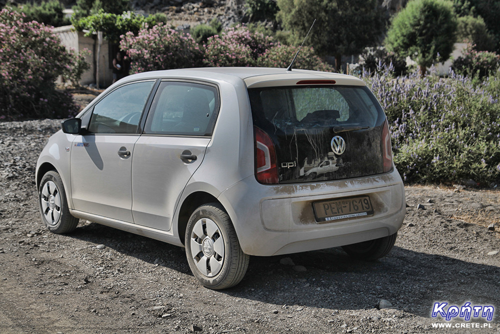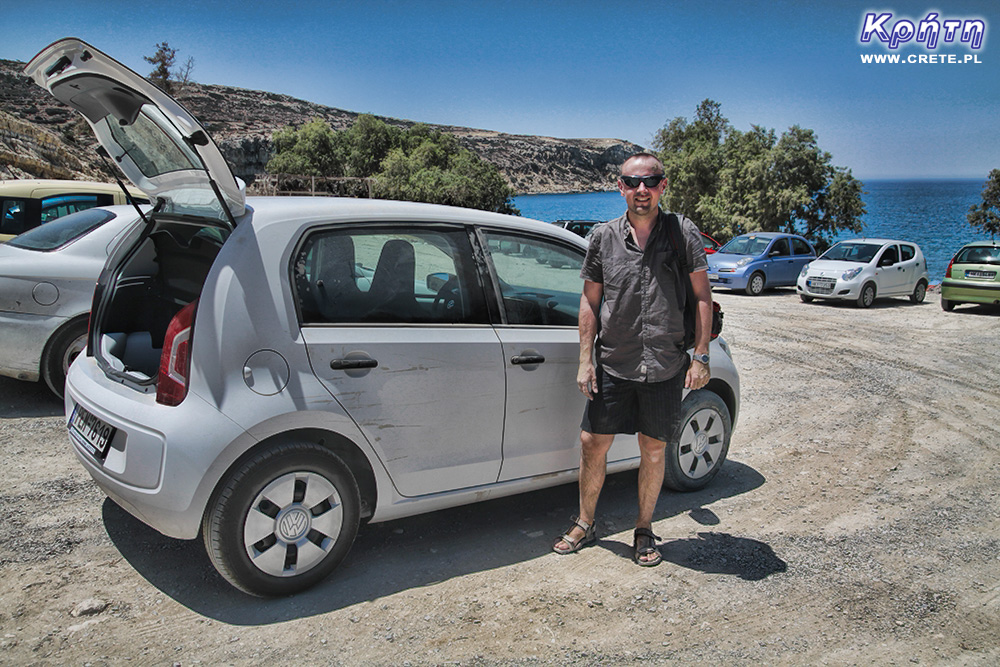 Po dojechaniu do Kommos i znalezieniu zjazdu w okolice plaży wjechaliśmy na spory szutrowy parking. Po zaparkowaniu samochodu nagle poczuliśmy, że jego przód wyraźnie się zapadł. Mając złe przeczucia postanowiliśmy przeparkować samochód w inne miejsce. Niestety okazało się to niemożliwe. UP nie był w stanie samodzielnie wyjechać. Pierwsze próby wyjechania na wstecznym spowodowały tylko wzniecenie tumanów pyłu oraz głębsze zapadanie się przodu samochodu w piachu.
