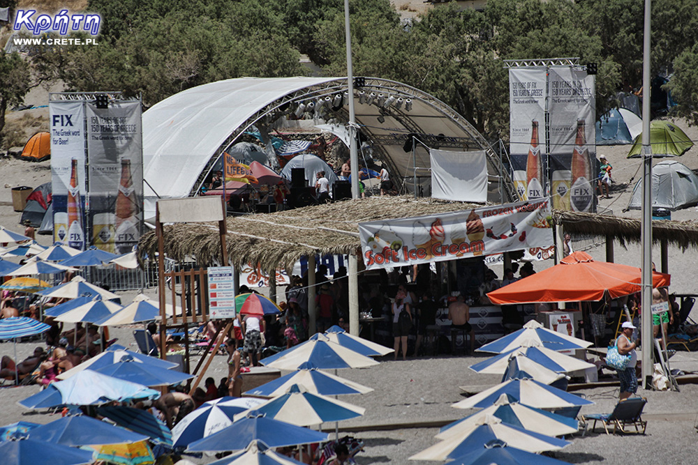 Korzystając z uroków położenia tej tawerny przy dźwiękach muzyki dobiegającej ze sceny podziwialiśmy niesamowitą ilość ludzi, która plażowała kilka metrów niżej. To co widzieliśmy przypominało raczej pocztówkę z plaży we Władysławowie. Na Krecie raczej trudno jest zobaczyć takie zagęszczenie leżaków, które tu były rozłożone w niewielkich odstępach od siebie. W takich warunkach na pewno ciężko mówić o wypoczynku, więc nawet nie przyszło nam do głowy, aby dołączyć do tłumu na dole.