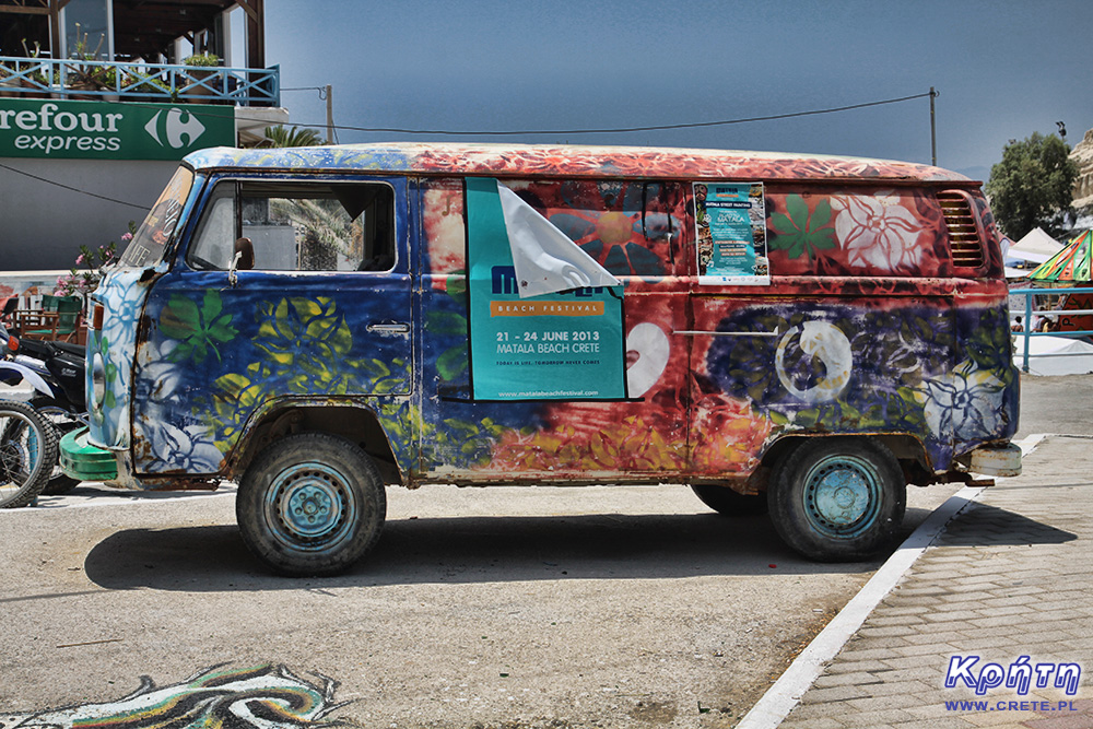 Po godzinie spędzonej na odpoczynku postanowiliśmy jechać dalej. Kolejnym celem była znajdująca się po sąsiedzku Matala, w której tego dnia kończył się festiwal "Matala Open Air". To stosunkowo młoda impreza, która jednak szybko wrosła w kalendarz wakacyjnych wydarzeń odbywających się na Krecie. Była to trzecia edycja festiwalu, na którym wspominana była muzyka związana z ruchem hippisów, którzy od wielu lat są obecni w Matali i tworzą swoisty klimat tej miejscowości.