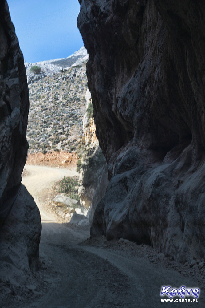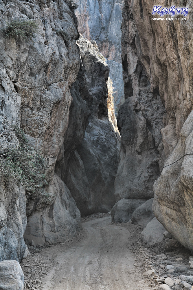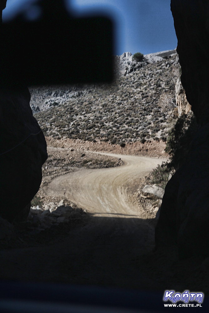 Miejsce to wpadło nam w oko jeszcze na etapie wstępnego planowania wakacji. Na jednej ze stron poświęconych Krecie trafiliśmy na zdjęcia wąwozu, które wzbudziły naszą ciekawość. Tym samym Tripiti trafiło na naszą listę "to do" a w zasadzie "to see". W serwisie cretanbeaches.com znajduje się dość enigmatyczny opis drogi wiodącej do tego miejsca, który określa ją jako przejezdną. Początkowo szutrowa droga jest dosyć szeroka i dobrze utrzymana. Jednak dalszy odcinek wspinający się do przełęczy nie ma już tak dobrej nawierzchni. Po rozpoczęciu zjazdu w stronę wąwozu Tripiti jakość drogi ulega jeszcze pogorszeniu także odcinek ten jest dosyć wymagający i przejazd możemy polecić jedynie doświadczonym kierowcom lub osobom dysponującym samochodem z napędem 4x4. Po zjechaniu na dół rozległego wąwozu dojeżdża się do stromej skalnej ściany. Dalsza część drogi poprowadzona jest wąskim kanionem, którego szerokość miejscami jest niewiele większa od szerokości samochodu.