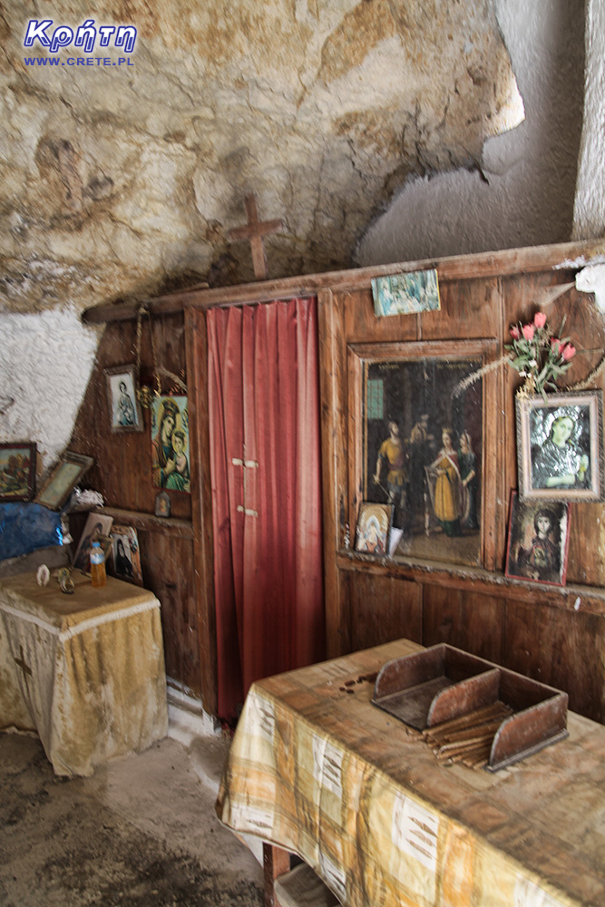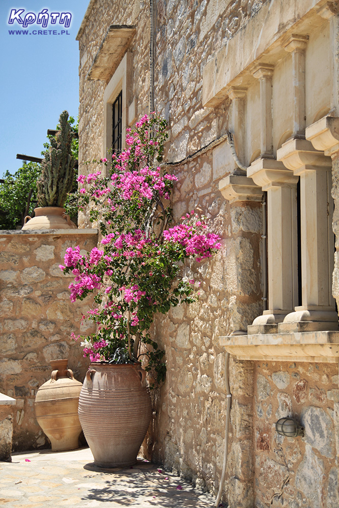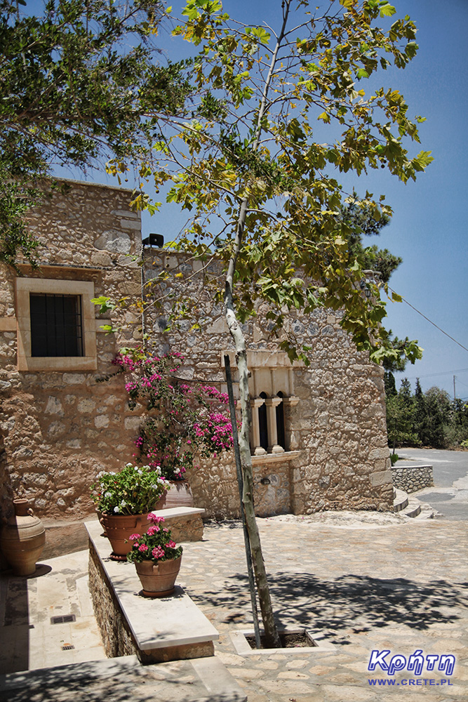 Kilka kilometrów od opuszczonej Mili znajduje się klasztor Agia Irini będący jednym z najstarszych tego typu obiektów na Krecie. Najstarsza część zabudowań pochodzi aż z XI wieku, więc z tego względu zwróciliśmy na niego uwagę w trakcie planowania trasy na dzisiejszy dzień. W latach 90-tych z inicjatywy sióstr zakonnych rozpoczęto odbudowę klasztoru. Przeprowadzone prace zyskały wysokie uznanie i zostały wyróżnione nagrodą Europa Nostra przyznawaną za ochronę dziedzictwa narodowego. Niestety trafiliśmy tu w czas popołudniowej sjesty w czasie, której zwiedzanie kościoła znajdującego się wewnątrz klasztoru było niemożliwe. Udało nam się jednak zobaczyć najstarszą niewielką część pozostałości dawnego kościoła pochodzącego z XI wieku. Do dzisiejszych czasów przetrwały tylko skromne elementy ołtarza. Nowsza część zabudowań klasztornych jest pięknie odrestaurowana i sprawia wrażenie bardzo zadbanej.