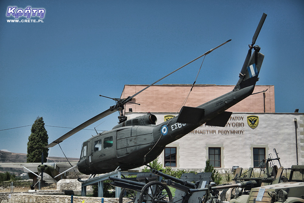 Chromonastiri, czyli kolejne miejsce, które odwiedziliśmy tego dnia, trafiło na naszą listę zupełnie przypadkowo. Kierunkowskazy wskazujące muzeum wojskowe znajdujące się w tej miejscowości są dosyć częstym widokiem na okolicznych drogach. Postanowiliśmy sprawdzić co jest reklamowane z taką intensywnością. Po dojechaniu na miejsce naszym oczom ukazał się niewielki zadbany budynek, przed którym wystawiona została ekspozycja sprzętu wojskowego, jaki znajdował się na wyposażeniu Greków. Nie jest to jednak wszystko co jest eksponowane przez to muzeum, gdyż znacznie więcej eksponatów wystawionych jest wewnątrz. Jak się okazało miejscem tym opiekuje się wojsko i po kupieniu dwóch biletów za łączną kwotę 3€, został nam przydzielony wojskowy przewodnik, który oprowadził nas i opisał historię tego ciekawego budynku.
