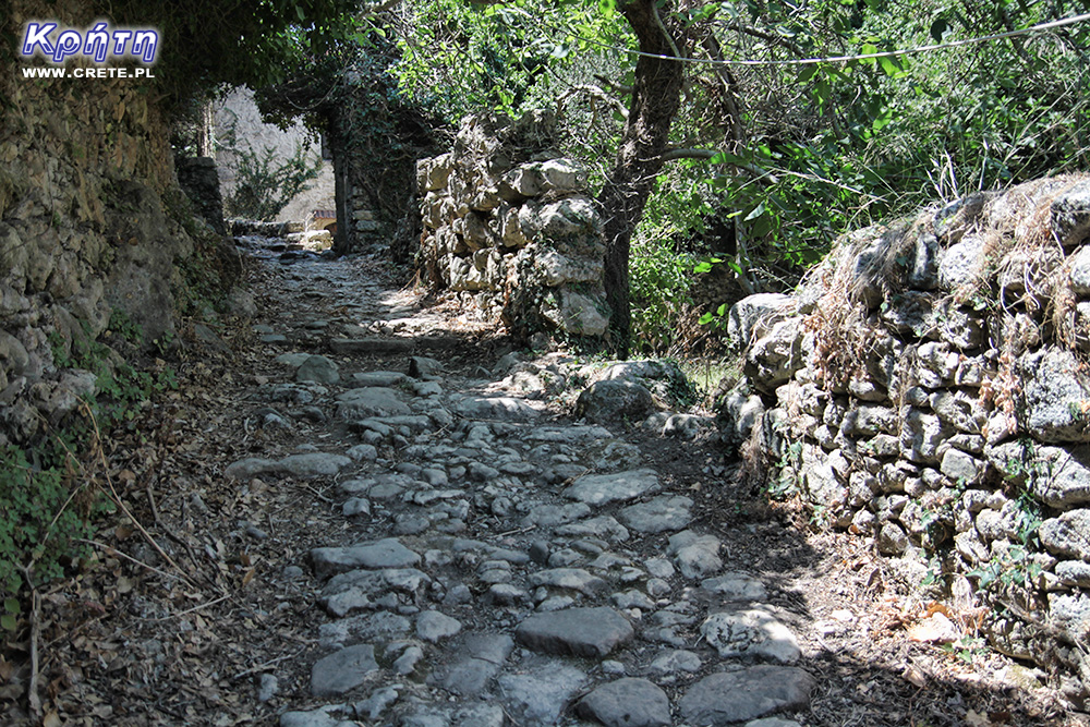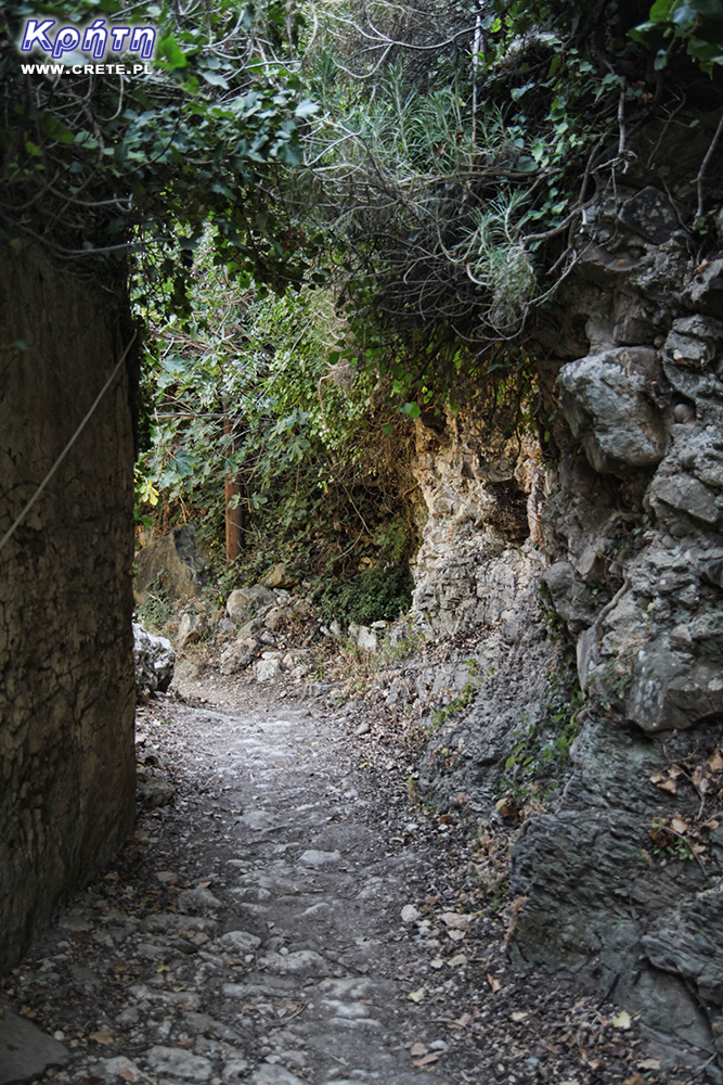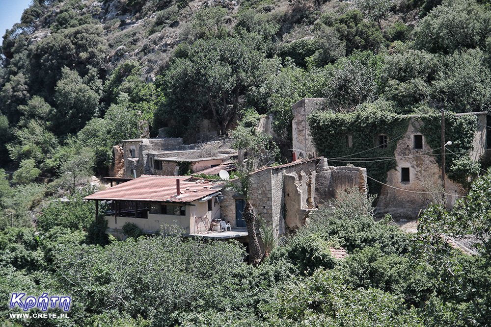 Korzystając z jego trafnego opisu dojechaliśmy do Nowej Drogi Narodowej by kierując się na wioskę Chromonastiri dojechać do starej Mili w ciągu dosłownie kilku minut. Opuszczona miejscowość położona jest w głębokim wąwozie, którego dnem latem płynie niewielka rzeczka. Po dojściu do niej i przejściu na drugą stronę wkracza się w głąb ciasnej zabudowy tworzonej przez opuszczone domostwa. Dawna Mili położona jest tuż przy stromej ścianie wąwozu, która właśnie była przyczyną przesiedlenia mieszkańców tej wioski. Ciągłe zagrożenie obsunięcia się ziemi zadecydowało o tym, że władze greckie wydały decyzję o nakazie opuszczenia tej miejscowości.